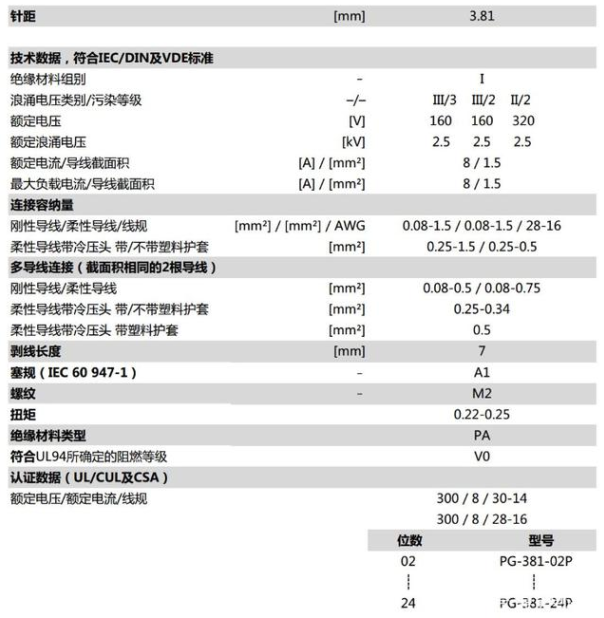 接線端子排型號(hào)常用英文字母、數(shù)字、拼音字母的方式,來標(biāo)明接線端子排電流量、尺寸和端點(diǎn)數(shù)量,以及廠家系列產(chǎn)品的型號(hào)等,如插拔式接線端子插頭PGF-381圖所示: