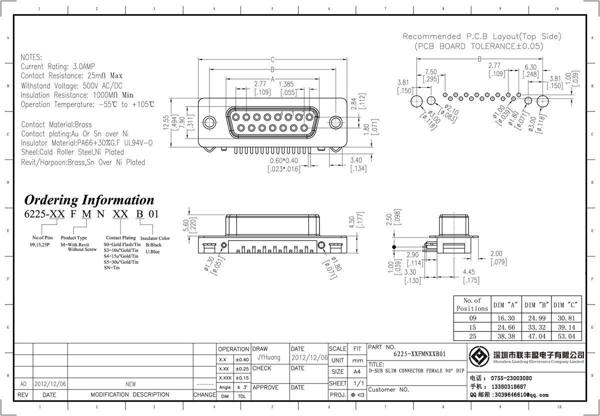 技術(shù)參數(shù):額定電流:3.0amp電流電阻:25mΩ最大絕緣電阻:1000mΩ min 承受電壓:AC 500V /分鐘工作溫度:55﹣℃+ 105℃接觸材料:黃銅觸點電鍍金或錫鎳絕緣體材質(zhì):聚酯(UL94V-0)標(biāo)準(zhǔn):PBT的+ 30%廣發(fā)殼:冷軋輥鋼、鍍鎳黃銅,Revit /魚叉:錫鎳鍍螺絲材質(zhì):黃銅.
