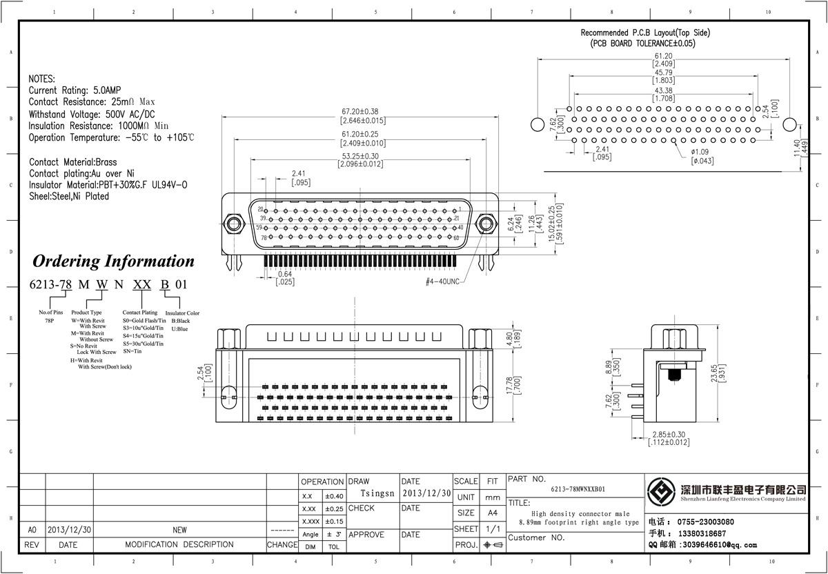 技術參數:額定電流:3.0amp電流電阻:20mΩ最大絕緣電阻:1000mΩMIN承受電壓:AC 500V /分鐘工作溫度:55oC + 105oC接觸材料:黃銅、磷青銅觸點電鍍金或錫鎳絕緣體材質:聚酯(UL94V-0)標準:PBT的+ 30%廣發殼:冷軋輥鋼,鍍鎳黃銅螺母:錫鎳板,