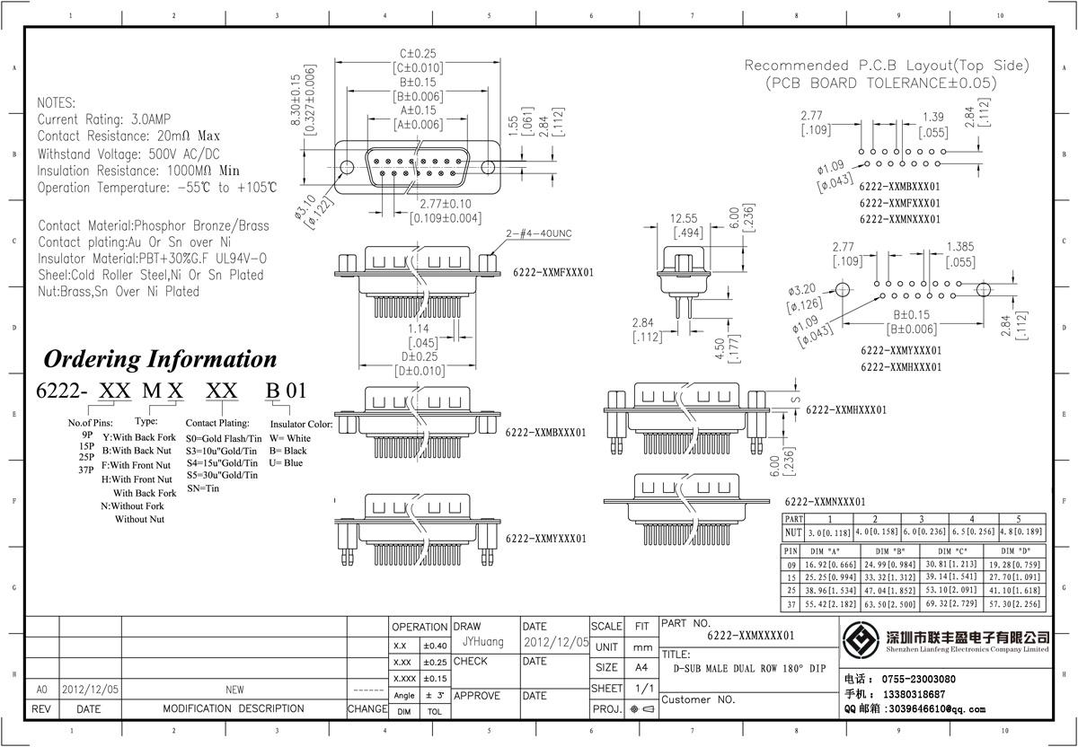 技術參數:額定電流:3.0amp電流電阻:25mΩ最大絕緣電阻:1000mΩ min 承受電壓:AC 500V /分鐘工作溫度:55﹣℃+ 105℃接觸材料:黃銅觸點電鍍金或錫鎳絕緣體材質:聚酯(UL94V-0)標準:PBT的+ 30%廣發殼:冷軋輥鋼、鍍鎳黃銅、錫在螺母:鍍鎳