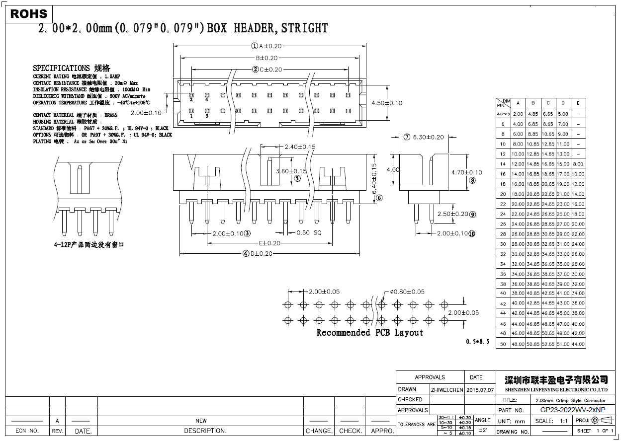 產品簡介品名:簡牛規格:插件/直式180°間距:2.00mmPIN數:6-50PIN備注:簡牛連接器系列