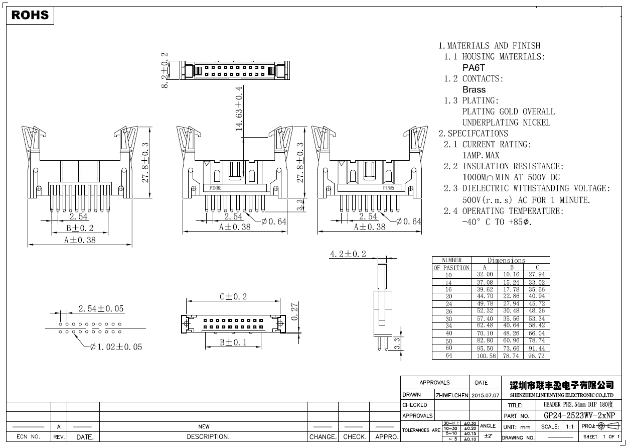 產品簡介品名:牛角規格:插件/直式180°間距:2.54mmPIN數:6-64PIN備注:牛角連接器系列