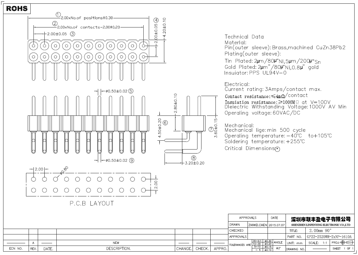 產(chǎn)品簡介品名:排針規(guī)格:插件/臥式90°間距:2.54mmPIN數(shù):2-40PIN備注:排針系列