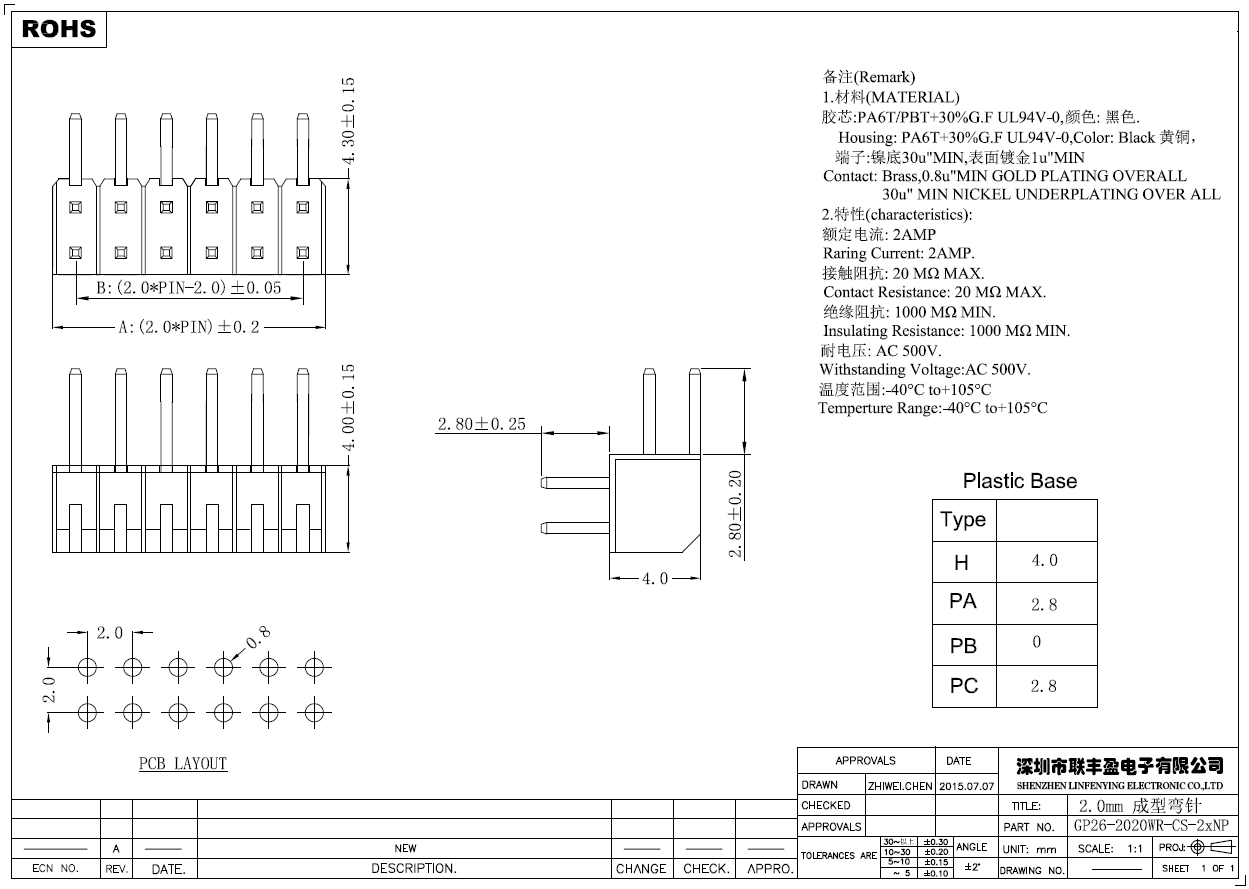 產品簡介品名:排針規格:插件/臥式90°間距:2.00mmPIN數:2-40PIN備注:排針系列