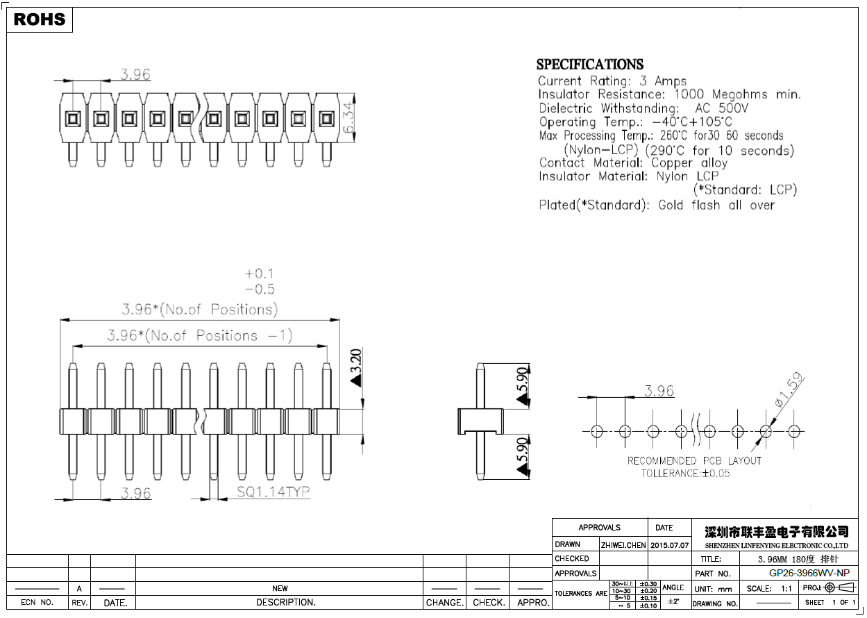 產品簡介品名:排針規格:插件/直式180°間距:3.96mmPIN數:2-40PIN備注:排針系列