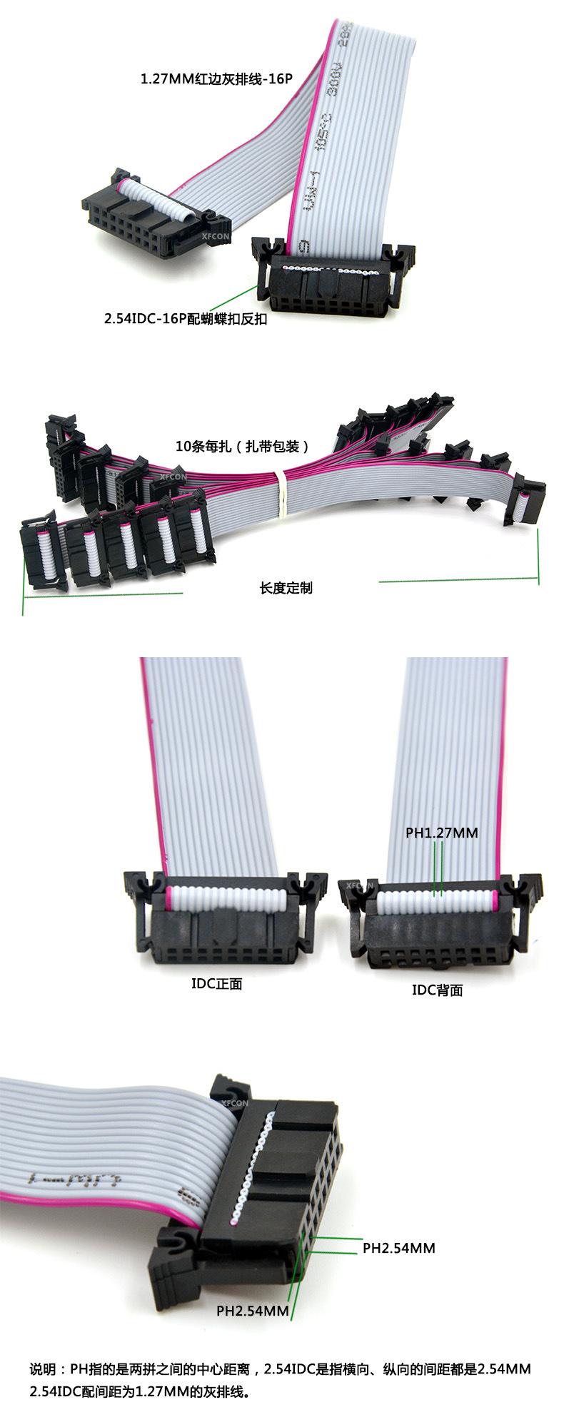 產(chǎn)品名稱:2.54IDC蝴蝶扣成品灰排線-16P