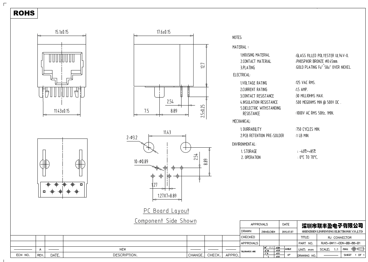 RJ45/RJ11 網絡連接器系列產品技術參數