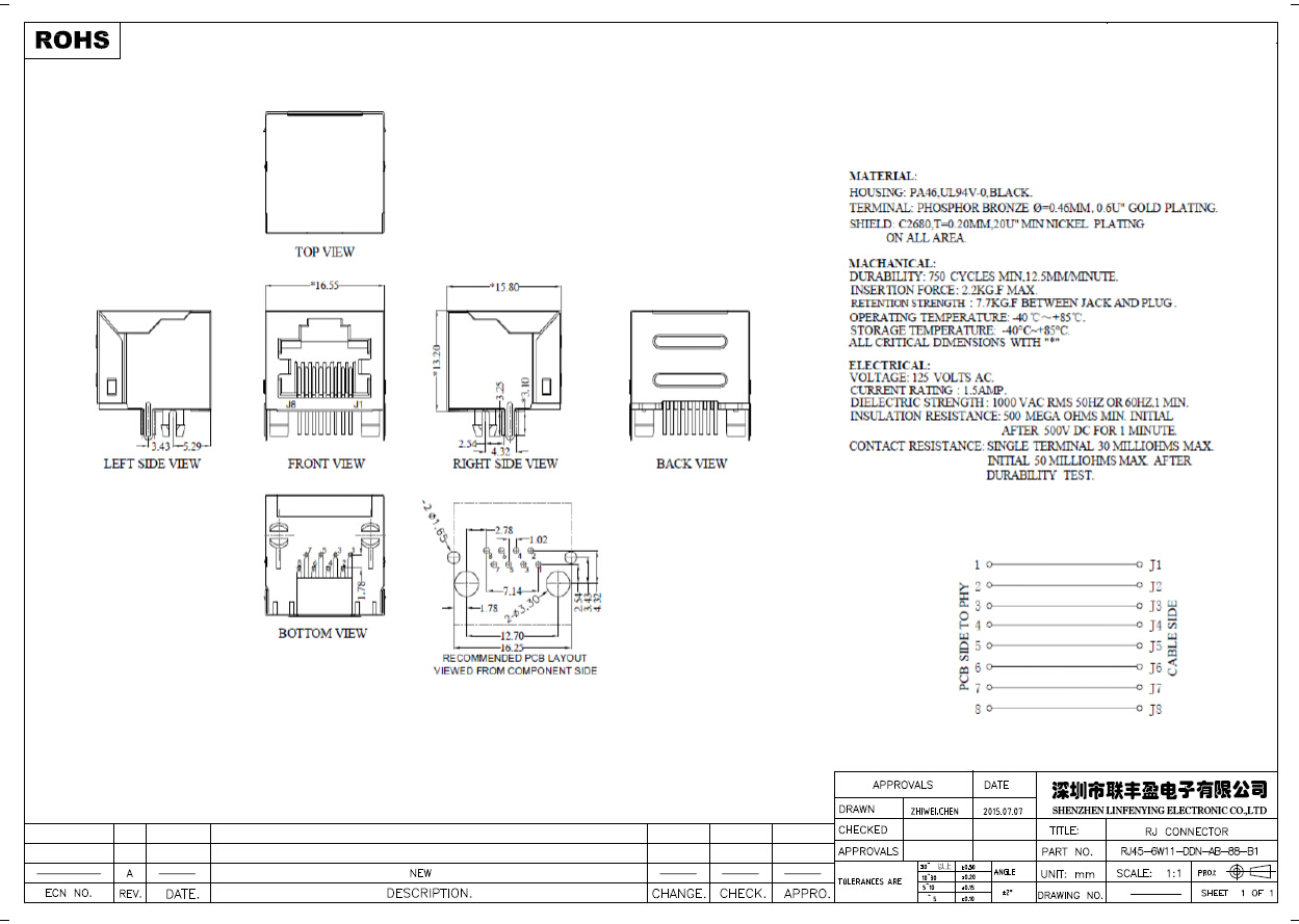 RJ45/RJ11 網(wǎng)絡(luò)連接器系列產(chǎn)品技術(shù)參數(shù)
