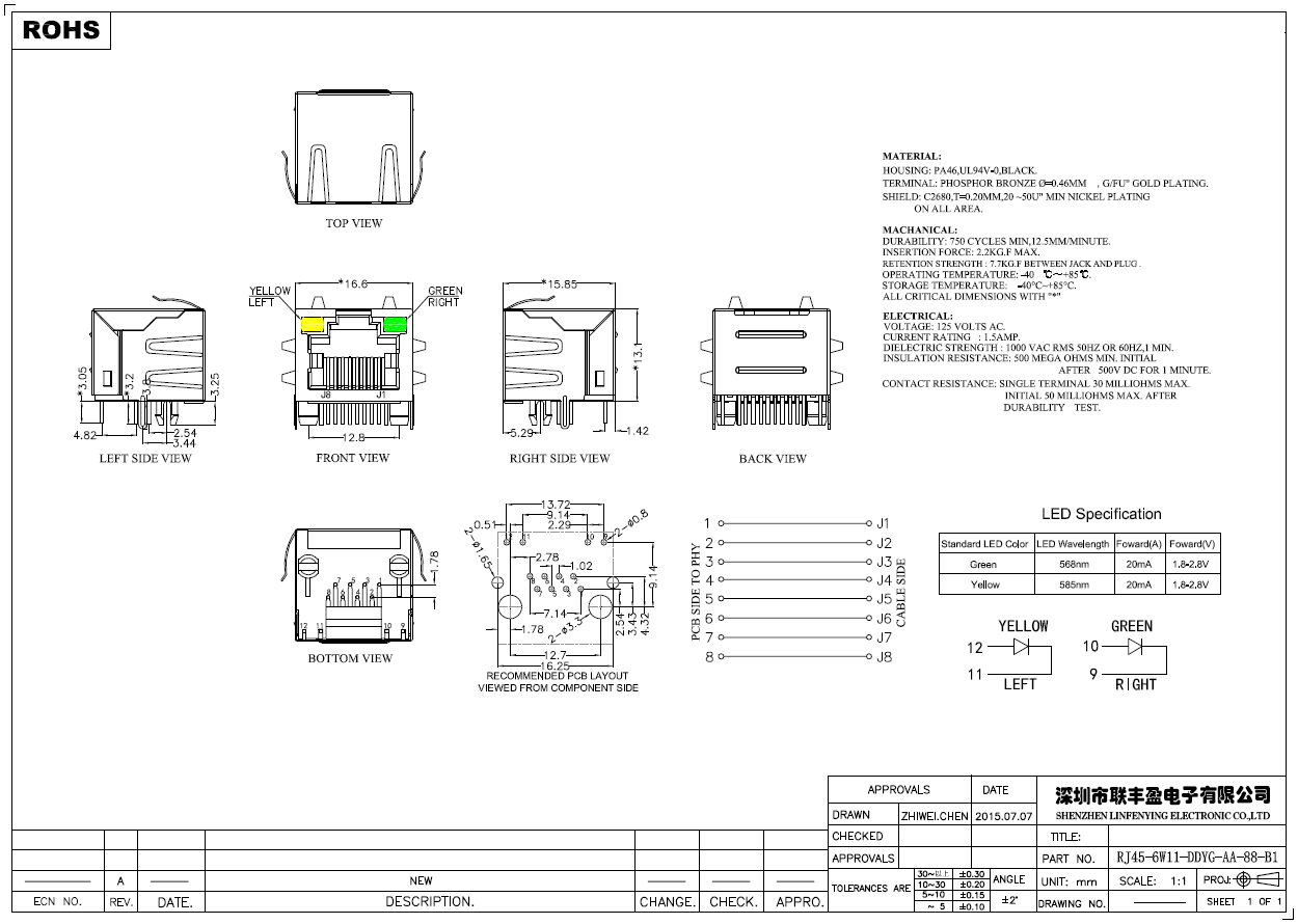 RJ45/RJ11 網絡連接器系列產品技術參數