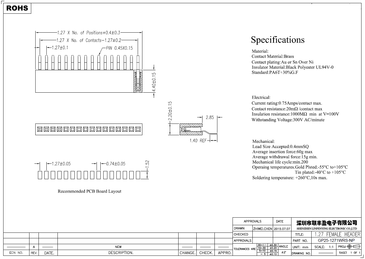 產(chǎn)品簡(jiǎn)介品名:排母規(guī)格:貼片/臥式90°間距:1.27mmPIN數(shù):2-40PIN備注:排母系列