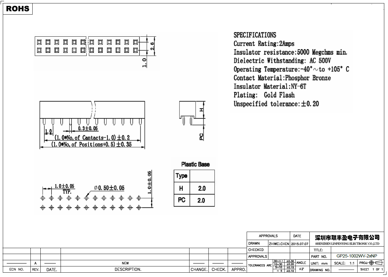 產品簡介品名:排母規格:插件/直式180°間距:1.00mmPIN數:2-40PIN備注:排母系列