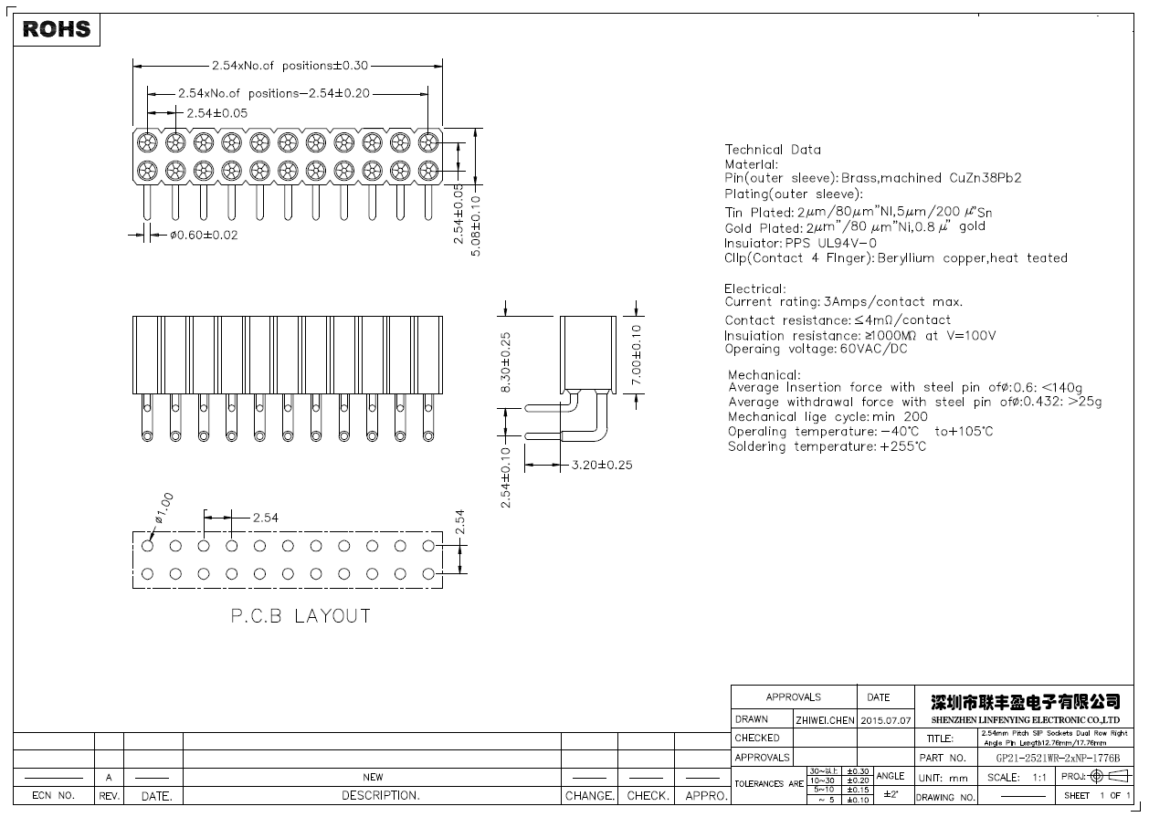 產品簡介品名:排母規格:插件/臥式90°間距:2.54mmPIN數:2-40PIN備注:圓孔排母系列