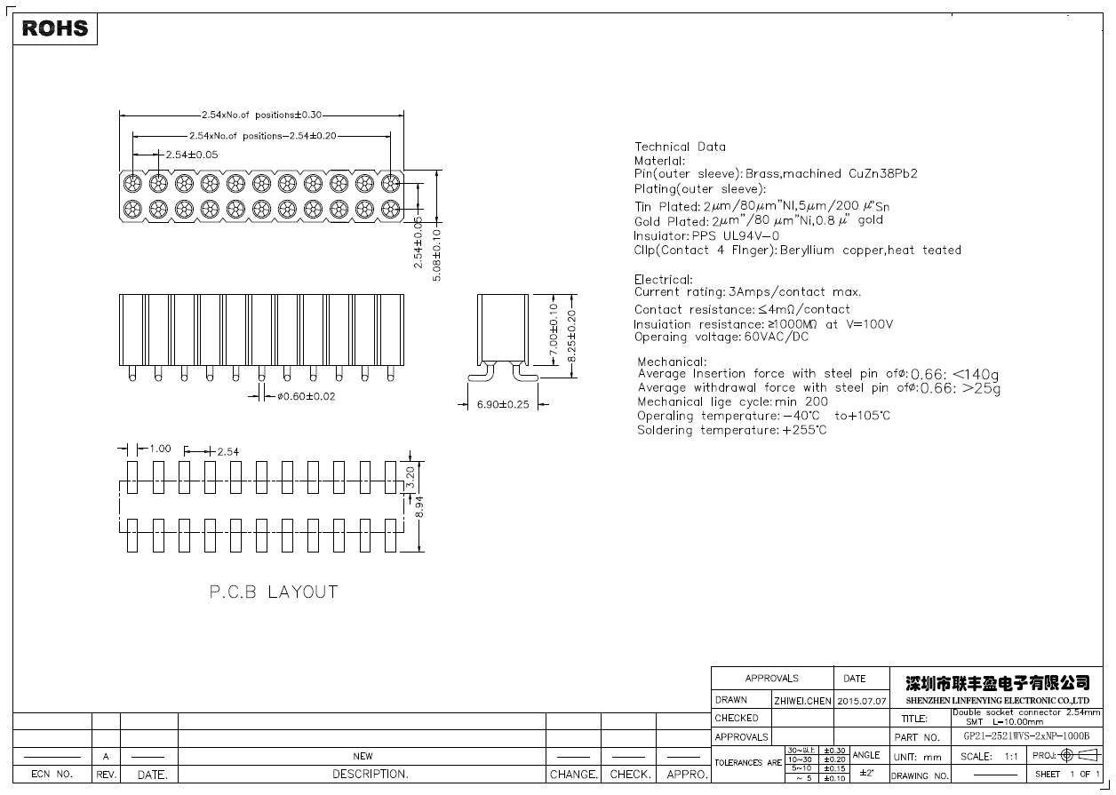 產品簡介 品名:排母規格:貼片/立式180°間距:2.54mmPIN數:2-40PIN備注:圓孔排母系列