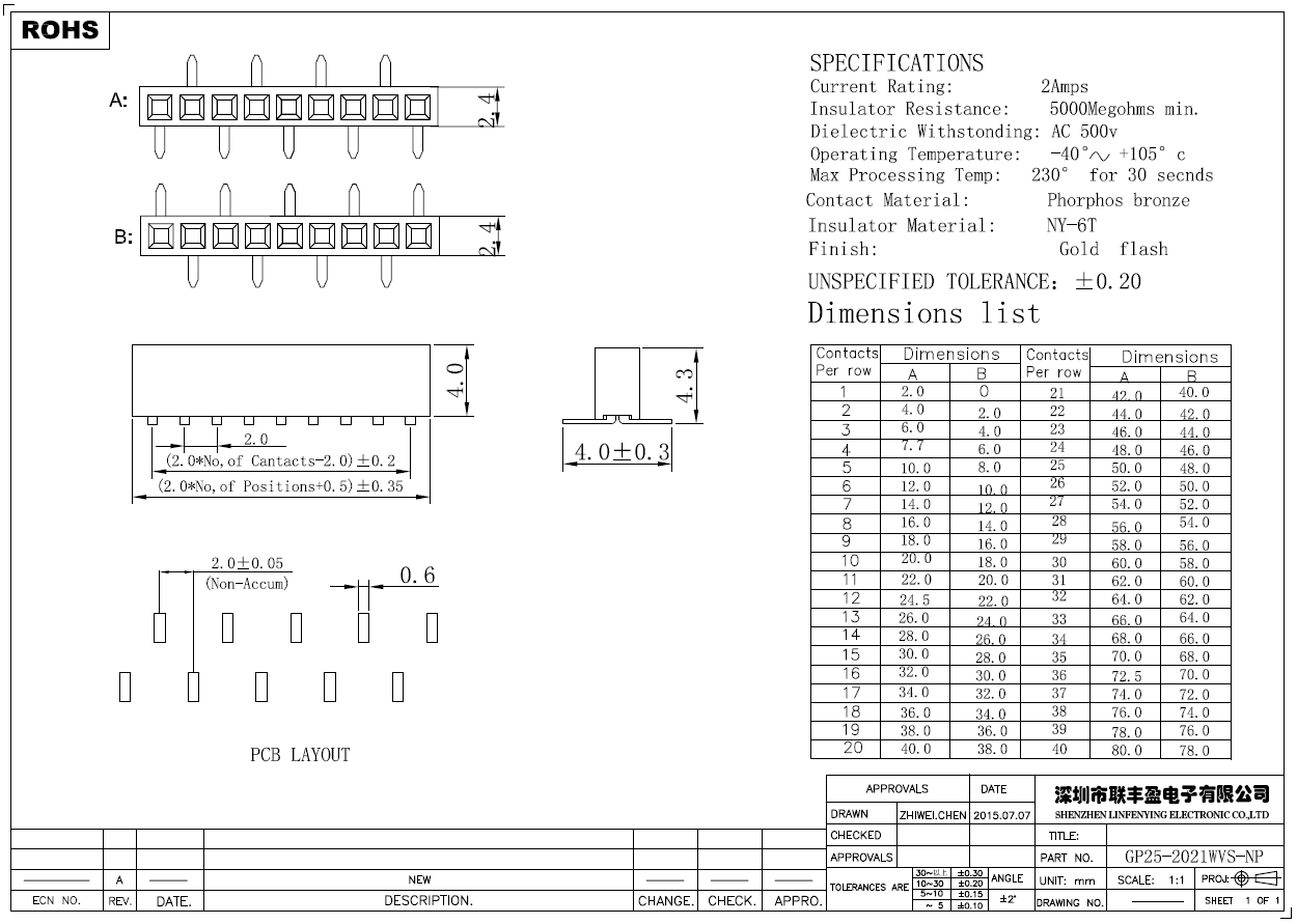 產品簡介品名:排母規格:貼片/立式180°間距:2.00mmPIN數:2-40PIN備注:排母系列