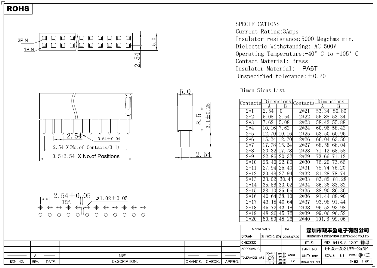 產品簡介品名:排母規格:插件/直式180°間距:2.54mmPIN數:2-40PIN備注:排母系列